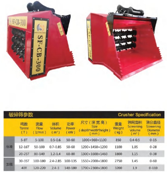 Descripción: La cuchara trituradora se puede proporcionar para la construcción a gran y pequeña escala, lo que puede ahorrar tiempo y reducir la mano de obra. El material se puede tratar con urgencia a nivel local de 0 a 100 mm de acuerdo con sus requisitos, ahorrando así tiempo y mejorando la eficiencia de la ingeniería.