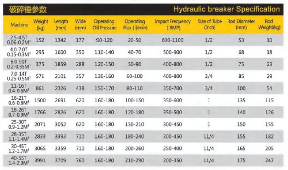 Descripción: Rompedor hidráulico con alta frecuencia de impacto y presión de operación. Varillas de diferentes diámetros y pesos.